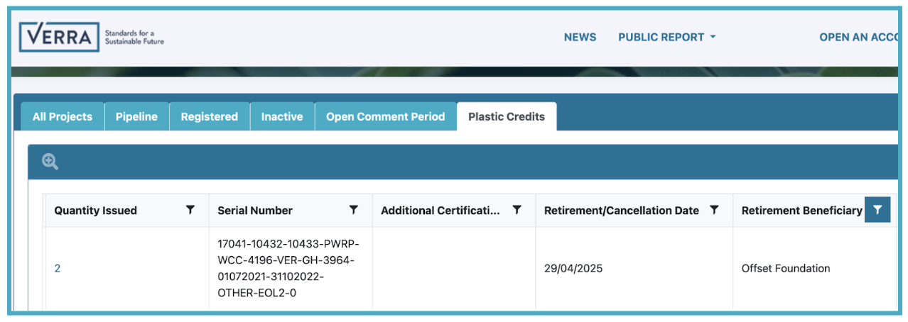 “Retirement” means these credits were officially recorded as used on the Verra Public Registry, ensuring full traceability and preventing double-counting.